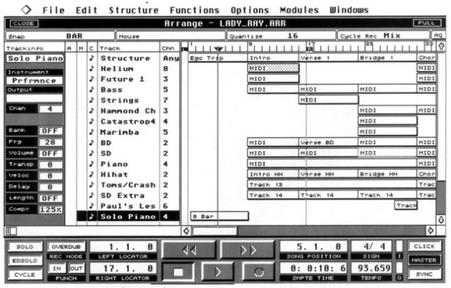 Initiation autodidacte à la M.A.O. (Cubase Audio sur Atari Falcon) + Acquisition d'un synthé et d'une boite à rythmes + Composition et écriture d'un premier Album